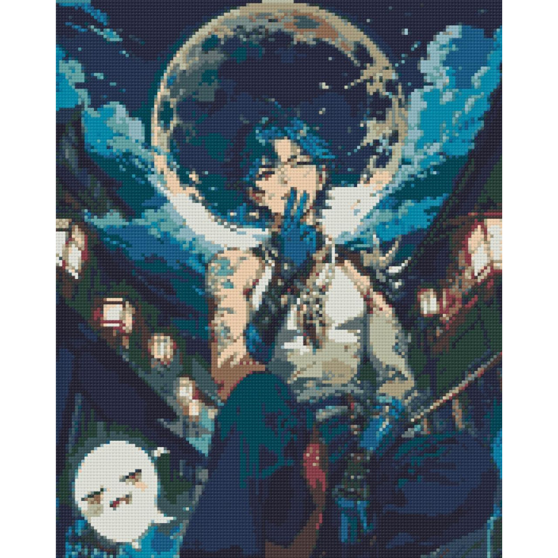 Алмазна мозаїка Аніме. Геншин імпакт Сяо на тлі місяця 40*50 см OD 30150 dp-a