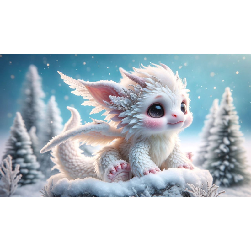 Алмазна мозаїка Білосніжний дракон у зимовому лісі 20*20см S10006