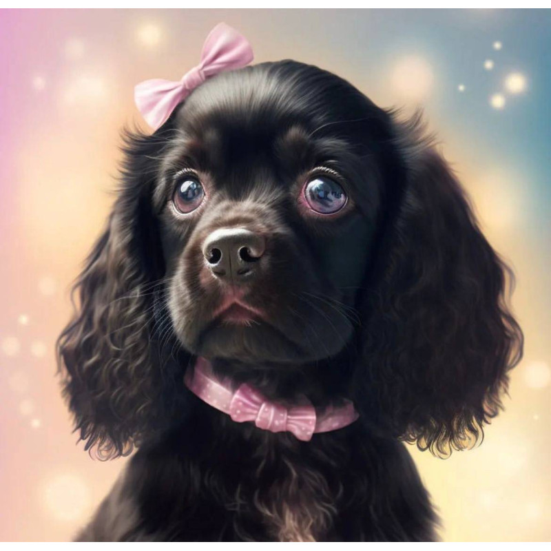 Алмазна мозаїка  Чорне щеня з рожевим бантом  30*40см S20058