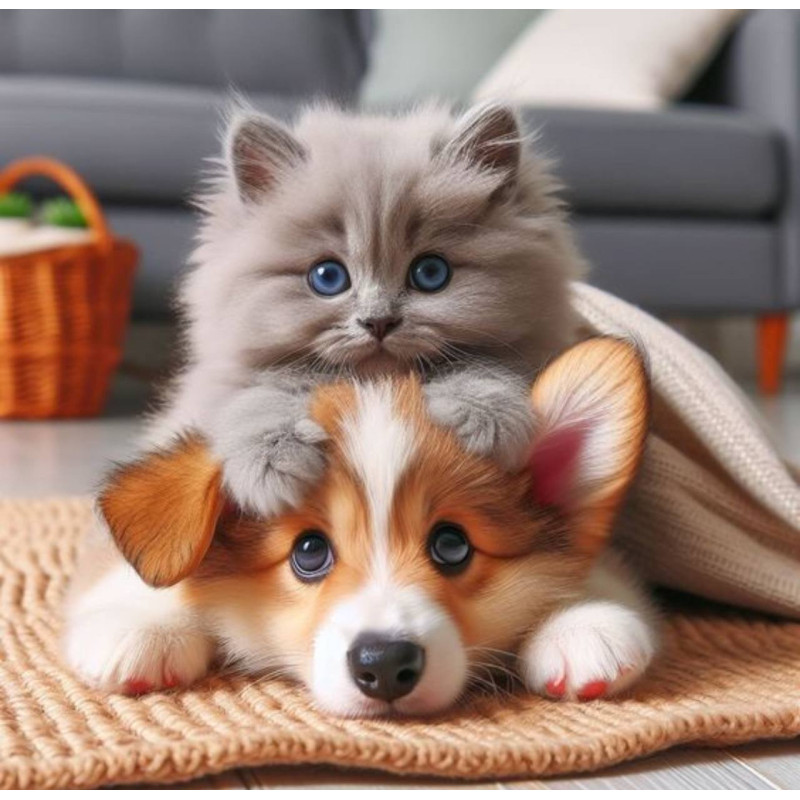 Алмазна мозаїка  Цуценя і кошеня  20*20см S10224