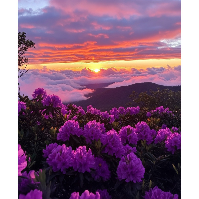 Алмазна мозаїка Фіолетові квіти в горах 30*40см S20218