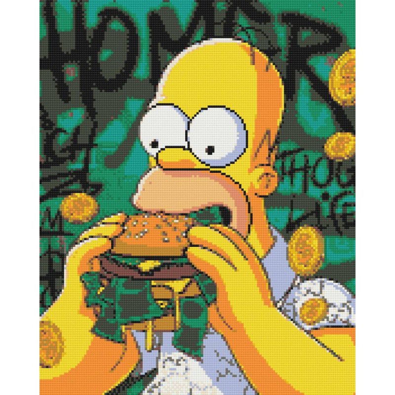 Алмазна мозаїка Герої кіно. Гомер з бургером 40*50 см Орігамі OD 3526