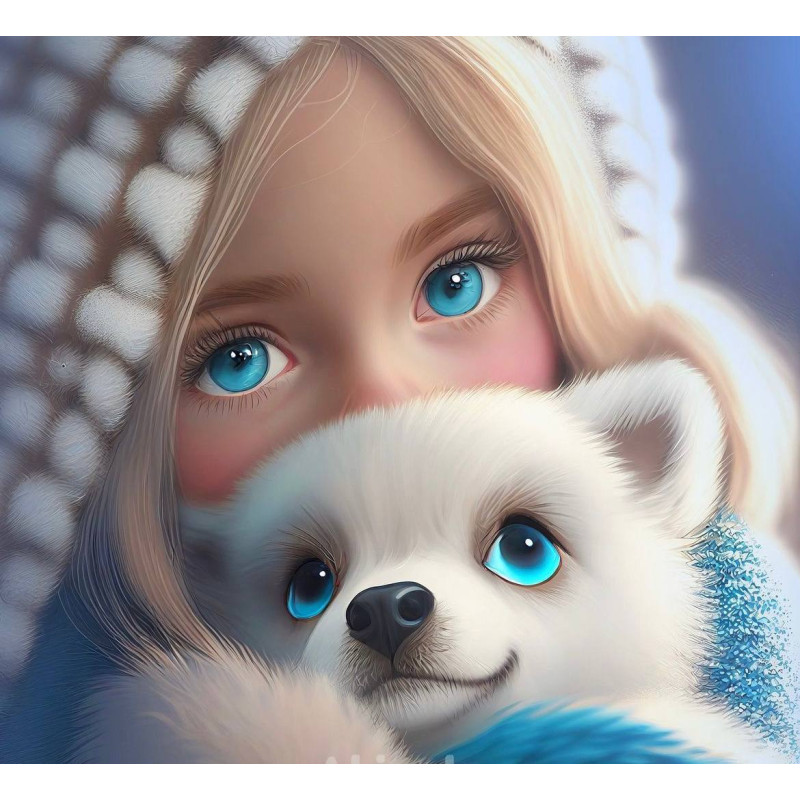 Алмазна мозаїка  Голубоока дівчинка з щеням  20*20см S10030