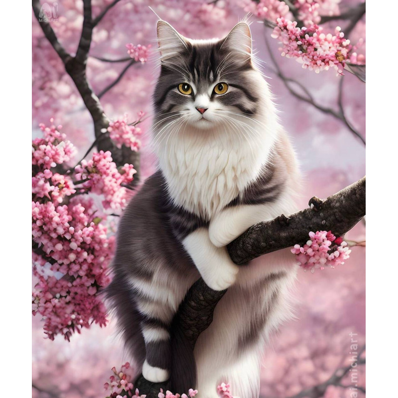 Алмазна мозаїка Кішка на квітучій гілці 30*40см S20048
