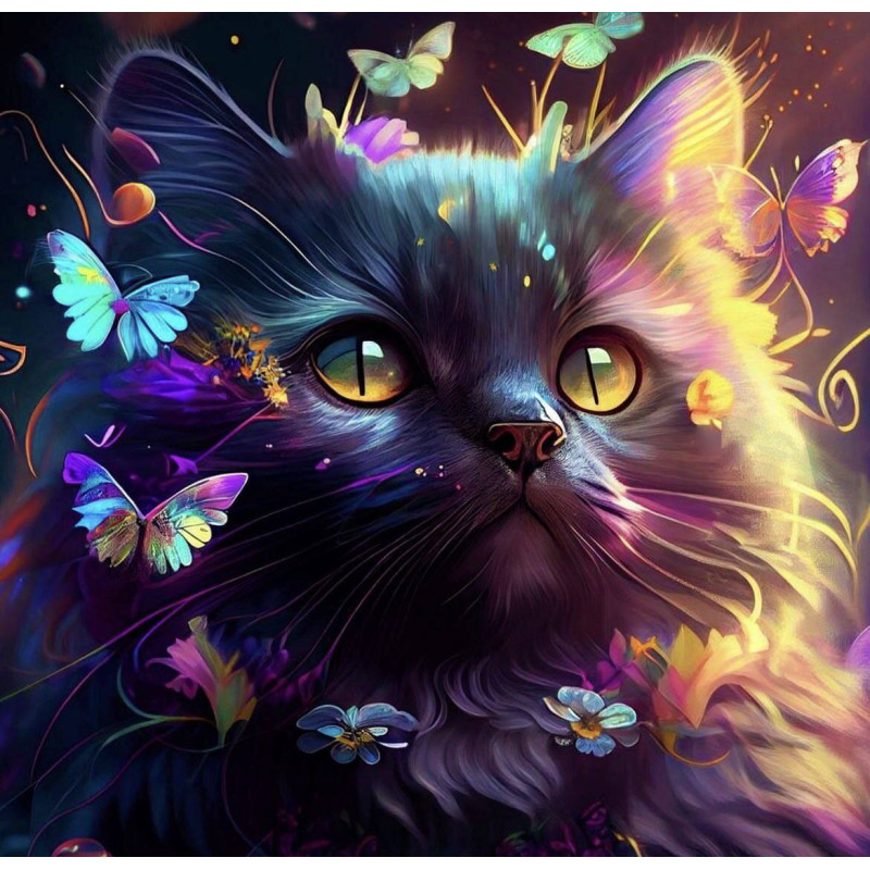 Алмазна мозаїка Кіт і метелики 30*40см S20073