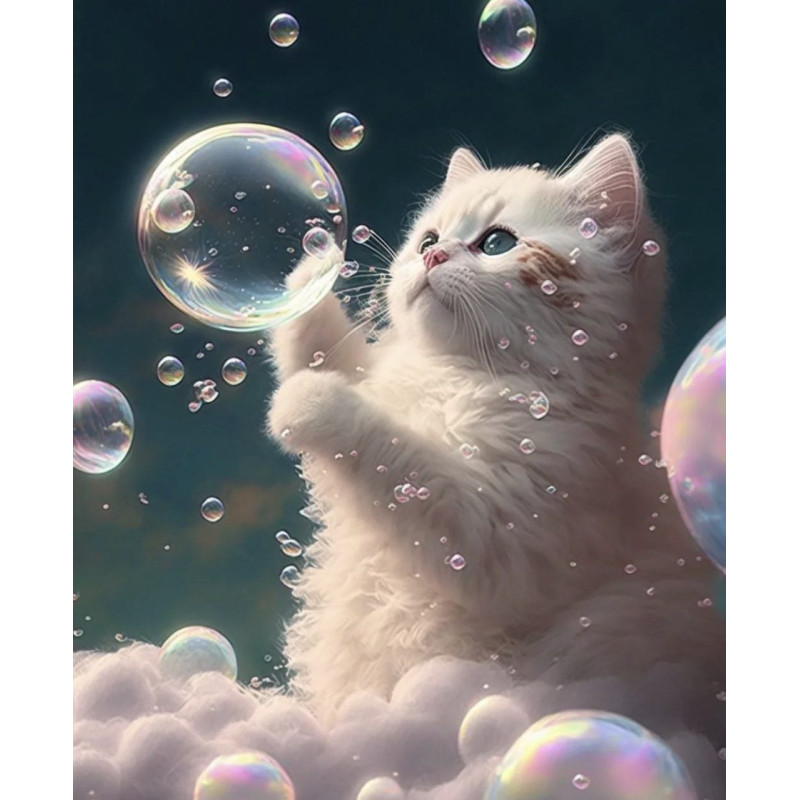 Алмазна мозаїка Котик із бульбашками 30*40см S20017