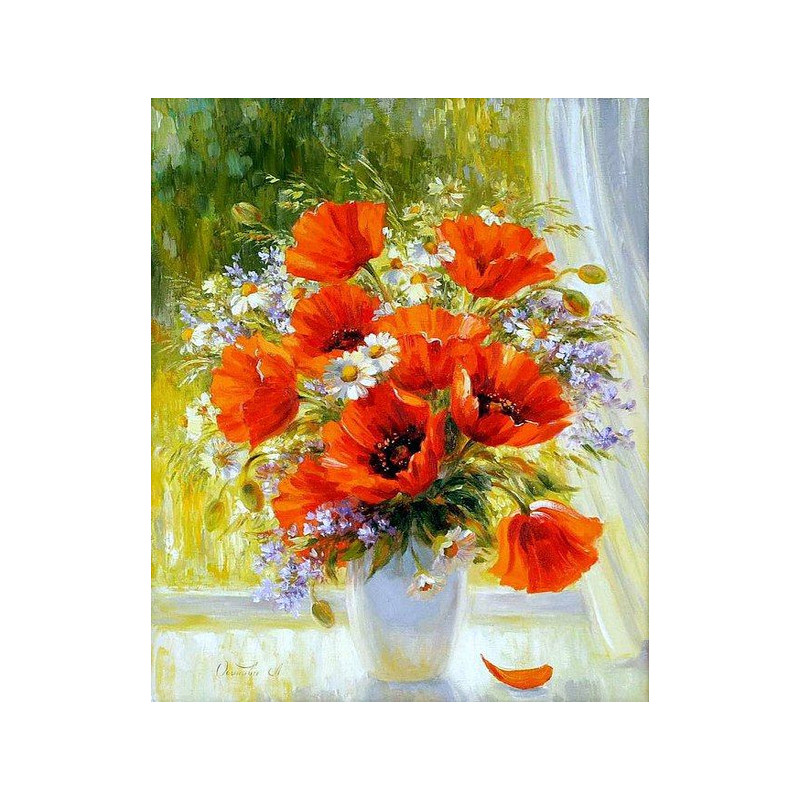 Склад набору: - полотно з клейовим шаром і кольоровою схемою, яке оформлено на підрамник галерейним способом, - акрилові стрази згідно комплектації набору (круглі), - спеціальна ручка-стилус для роботи зі стразами, - гель-клей, - лоток для сортування стразів