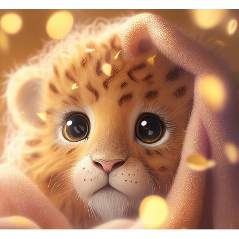 Алмазна мозаїка  Маленький леопард у теплі 20*20см S10032
