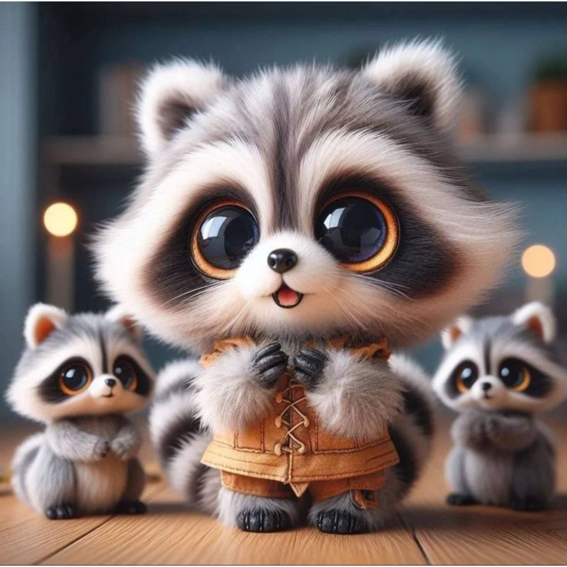 Алмазна мозаїка  Миле тріо єнотів 20*20см  S10179