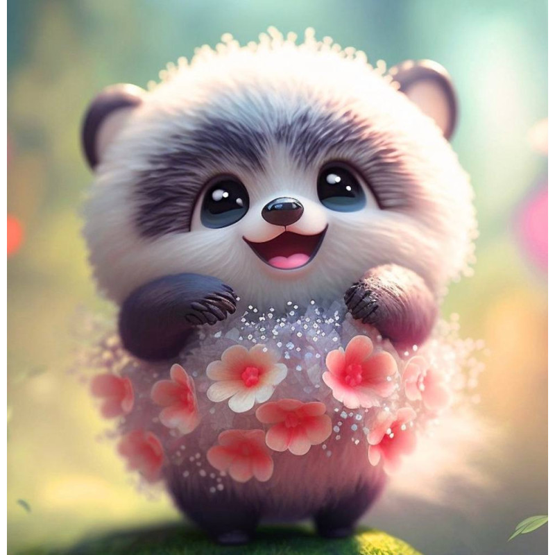Алмазна мозаїка Пухнастик з квітами 20*20см S10037