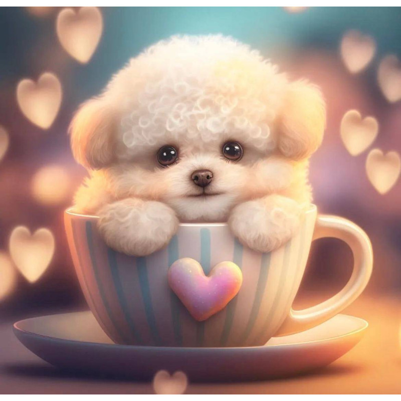 Алмазна мозаїка Щеня в чашці з серцем 20*20см S10050