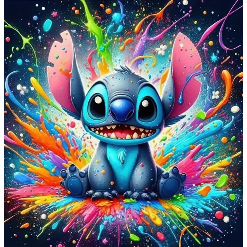Алмазна мозаїка Стіч в райдужних фарбах 20*20см S10343