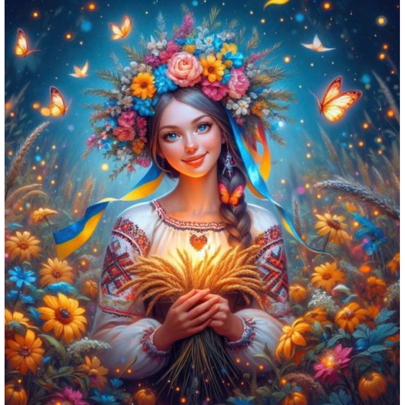 Склад набору: - полотно з клейовим шаром і кольоровою схемою, яке оформлено на підрамник галерейним способом, - акрилові стрази згідно комплектації набору (круглі), - спеціальна ручка-стилус для роботи зі стразами, - гель-клей, - лоток для сортування стразів