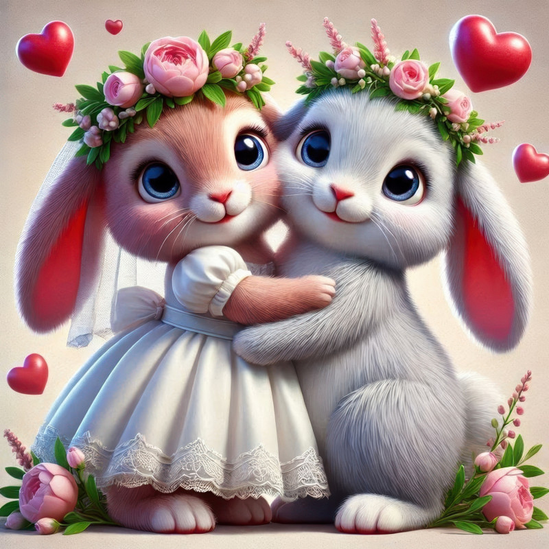 Алмазна мозаїка Весілля зайчиків 20*20см S10272