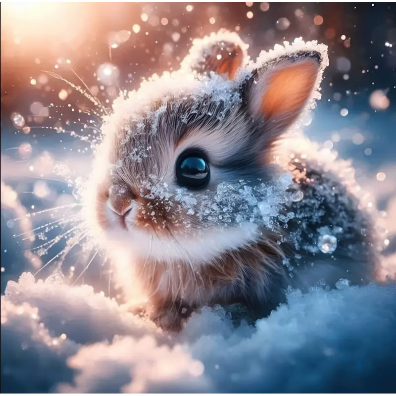 Алмазна мозаїка Зайчик у сніговому холодку 20*20см S10355