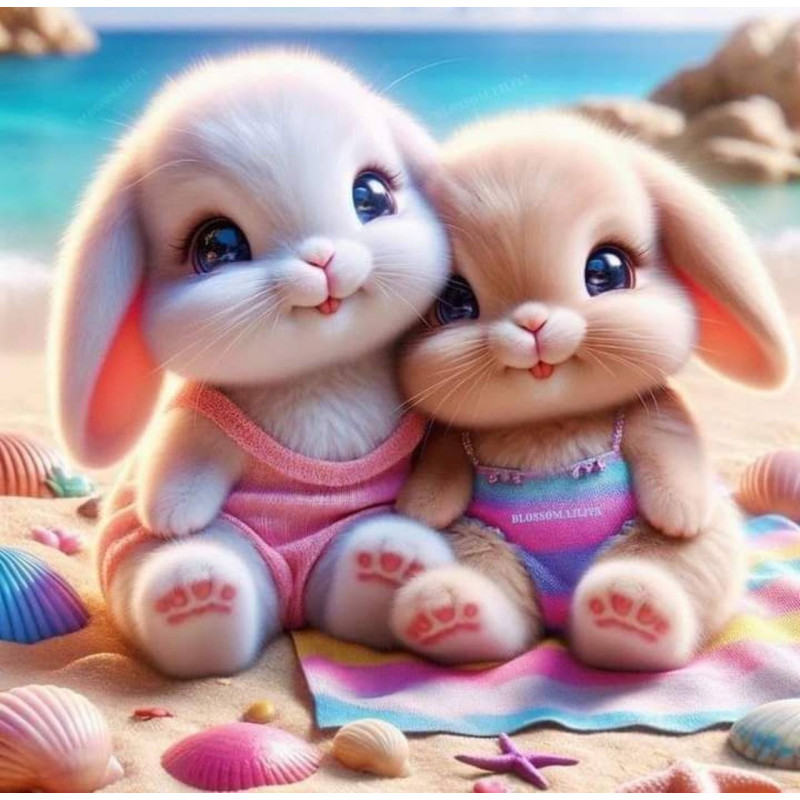 Алмазна мозаїка  Зайчики на пляжі 20*20см S10232