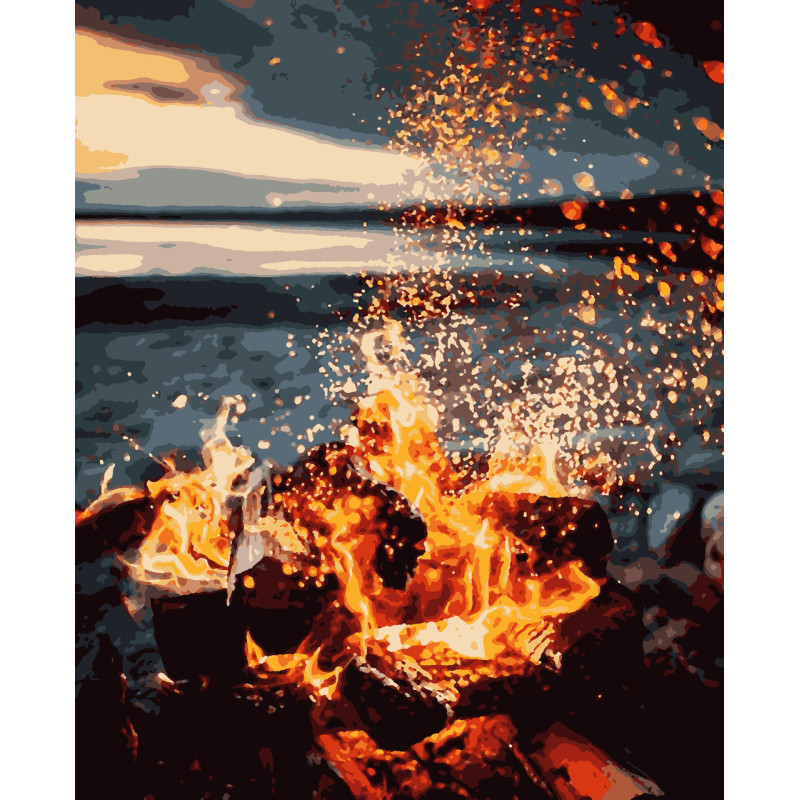 Натуральне полотно на підрамнику із галерейною натяжкою. На картину нанесено схему контурів зображення з нумерацією. - 2 нейлонові художні пензлі - Соковита палітра, пронумерованих, акрилових фарб у контейнерах - Специфікація