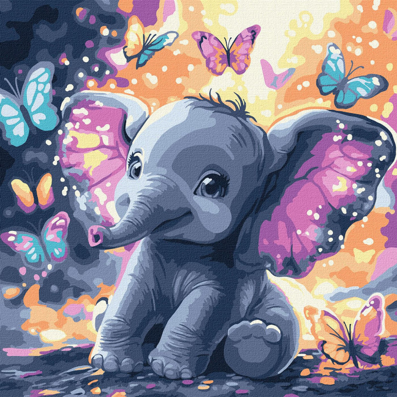 Картина за номерами Безтурботний слоник з фарбами металiк 30х30см КНО6761