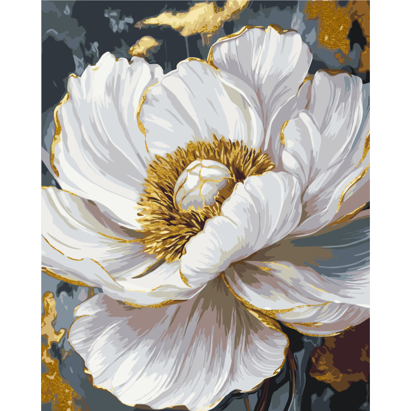 Картина за номерами  Біла півонія з фарбами металік 40*50 см LW 3429