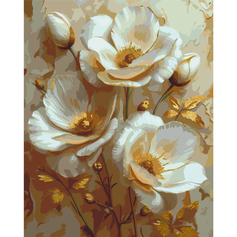 Картина за номерами Білі квіти з фарбами металік 40*50 см LW 3302