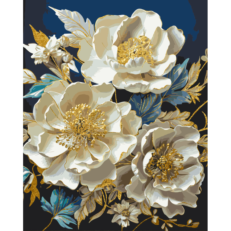 Картина за номерами Білі півонії з фарбами металік золото 40*50 см LW 30410