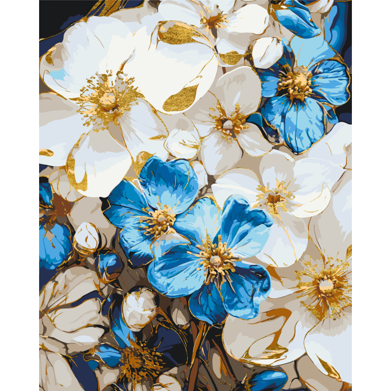 Картина за номерами Біло-блакитні квіти з фарбами металік 40*50 см LW 3293