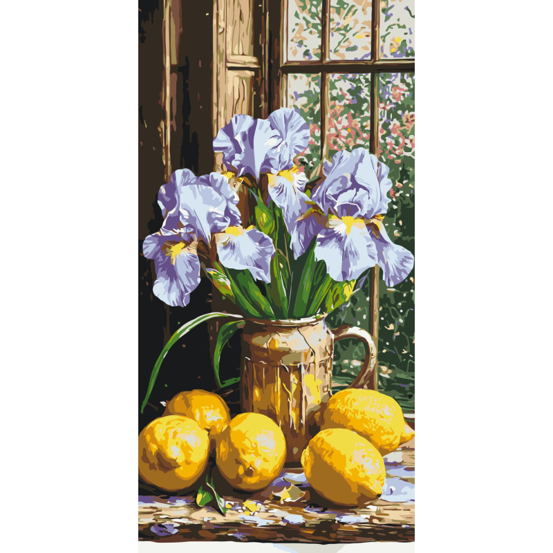 Картина за номерами Букет ірисів з лимонами. натюрморт 40*80 см LW 5117