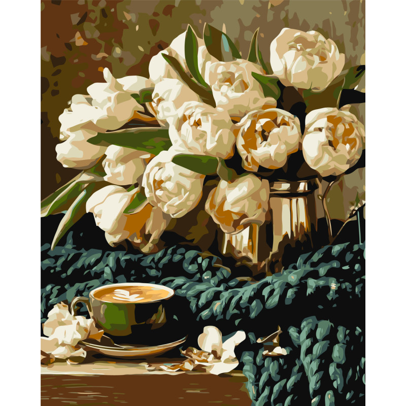 Картина за номерами Букет квітів з кавою  40*50 см LW 30980-01