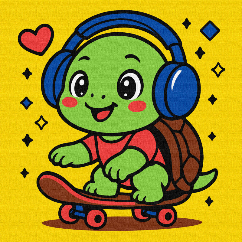 Картина за номерами Черепашка на скейті 25х25см  КНО1290