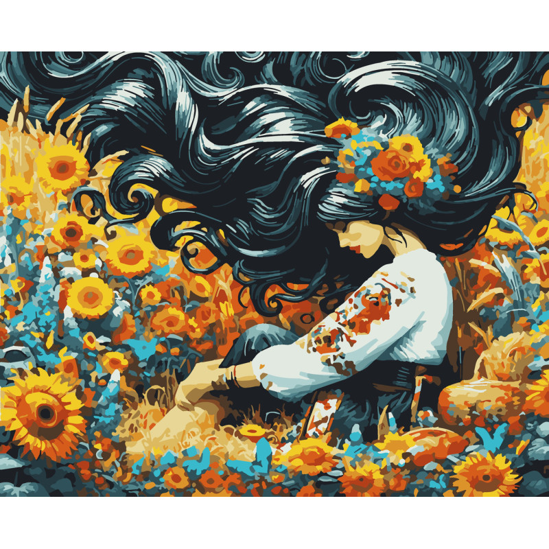 Натуральне полотно на підрамнику із галерейною натяжкою. На картину нанесено схему контурів зображення з нумерацією. - 2 нейлонові художні пензлі - Соковита палітра, пронумерованих, акрилових фарб у контейнерах - Специфікація