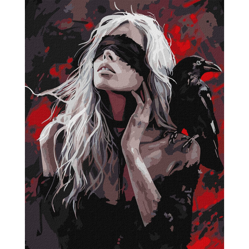 Картина за номерами Дівчина і ворона  40х50см КНО8692