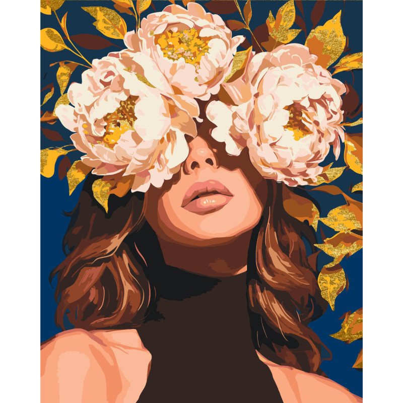 Картина за номерами  Дівчина у ніжних квітах півоній. Квіти 40*50 см LW 30521