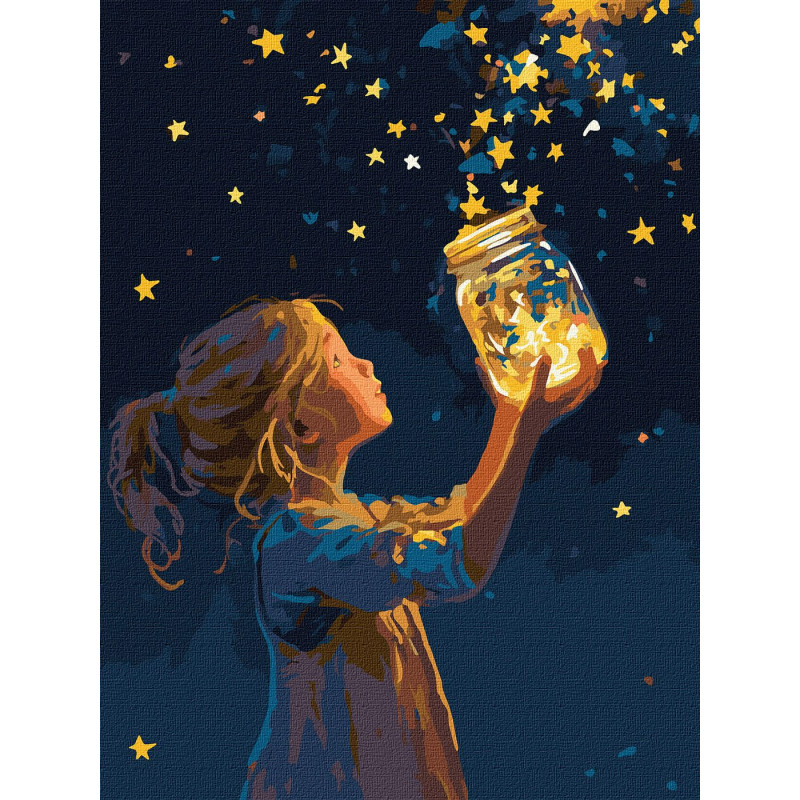 Картина за номерами Дівчинка і зірочки з фарбами металік 30х40см КНО8724