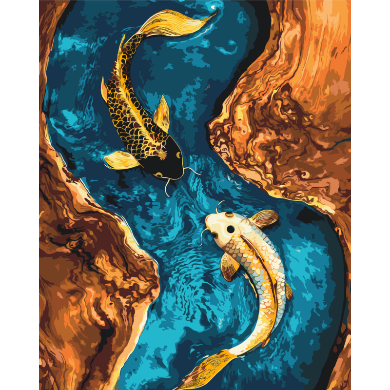Картина за номерами Дві рибки "інь-янь" з фарбами металік 40*50 см LW 3444