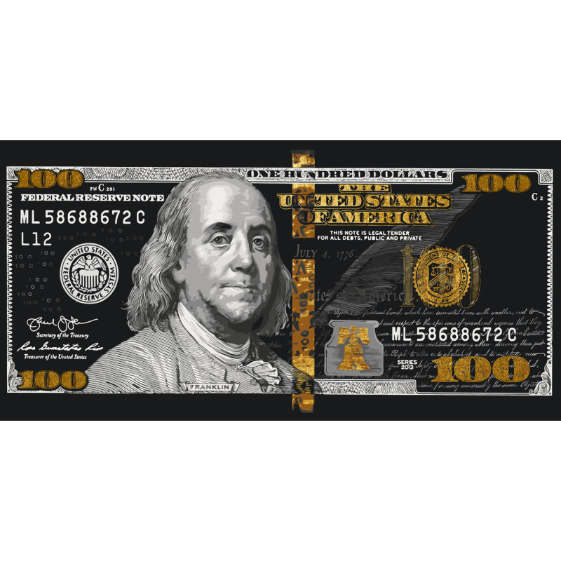 Картина за номерами Франклин. Доллар (100 доларів) З фарбами металік(золото) 40*80 см LW 5100
