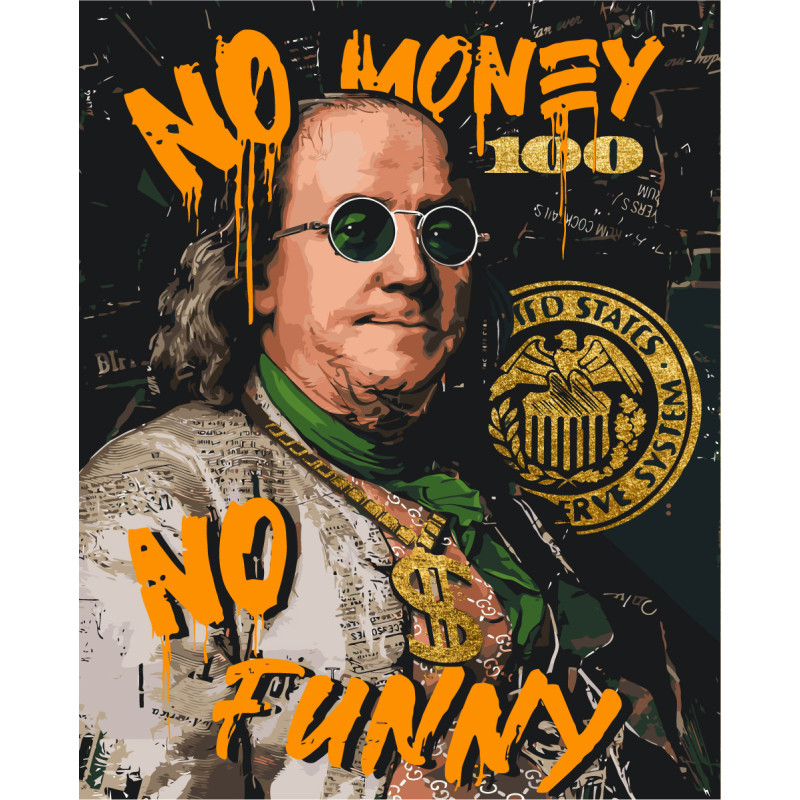Картина за номерами Франклін. No money no funny. Золоті фарби 40*50 см LW 3284