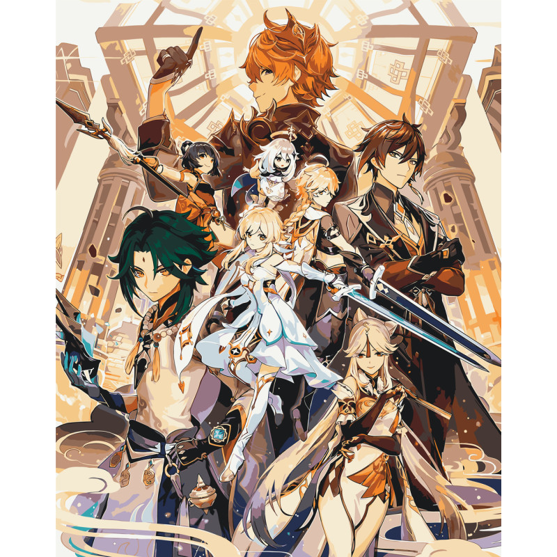 Картина за номерами Геншн Імпакт. Тарталья, Джун Лі, Сян Лін, Паймон, Ітер, Люмін, Сяо, Нін Гван. Аніме 40*50 см LW 30850