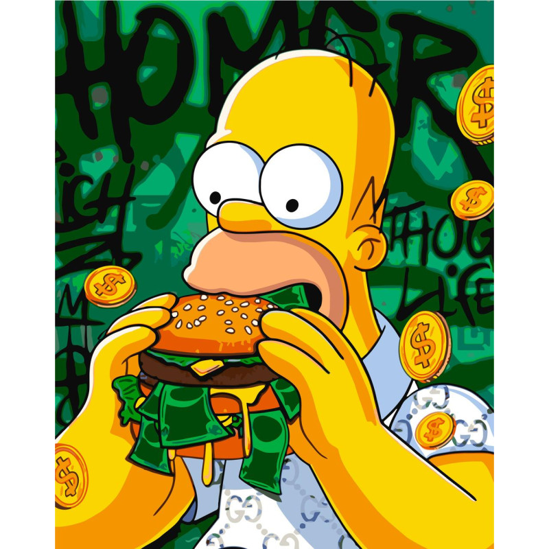 Картина за номерами Герої кіно. Гомер з бургером 40*50 см  LW 3526