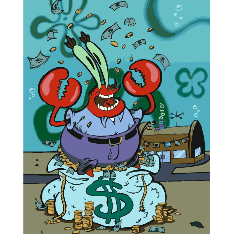 Картина за номерами Герої кіно. Містер Крабс з грошима 40*50 см  LW 3545
