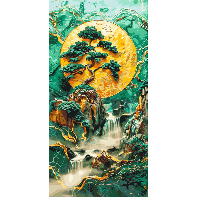Картина за номерами Гірський водоспад з фарбами металік 40*80 см LW 5105