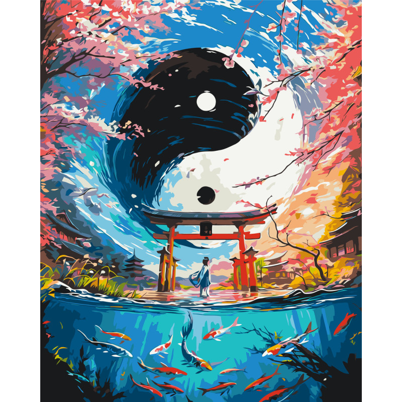 Картина за номерами  Інь Янь з японськими мотивами 40*50 см LW 3462