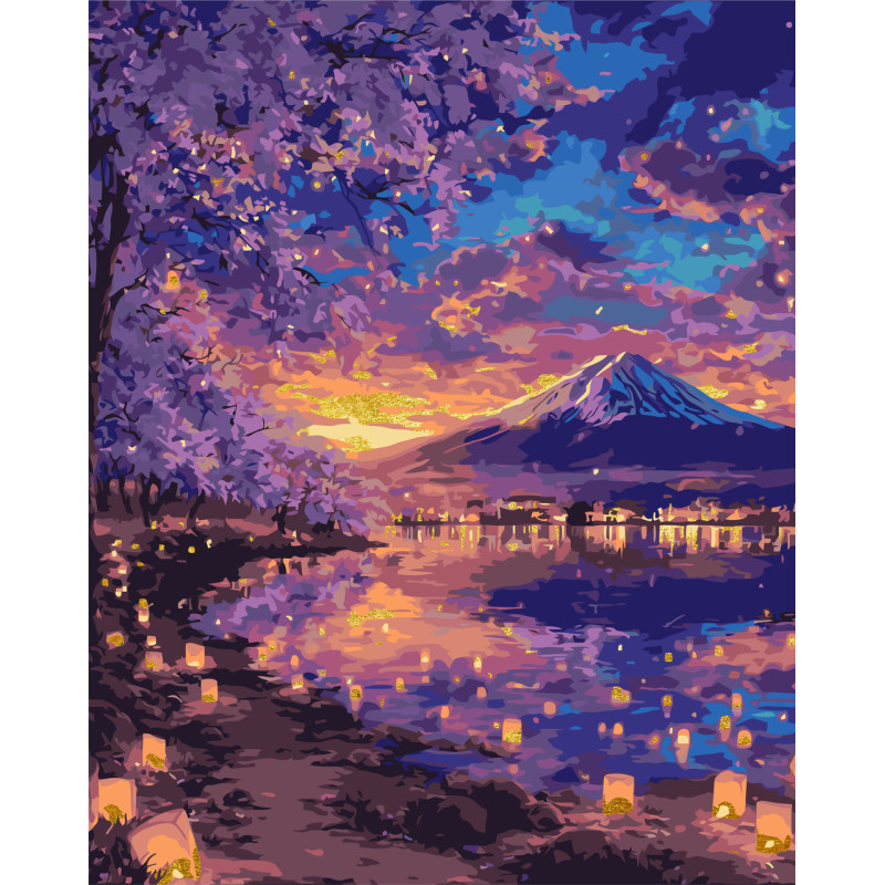 Картина за номерами  Казкова Фудзіяма з фарбами металік 40*50 см LW 3555