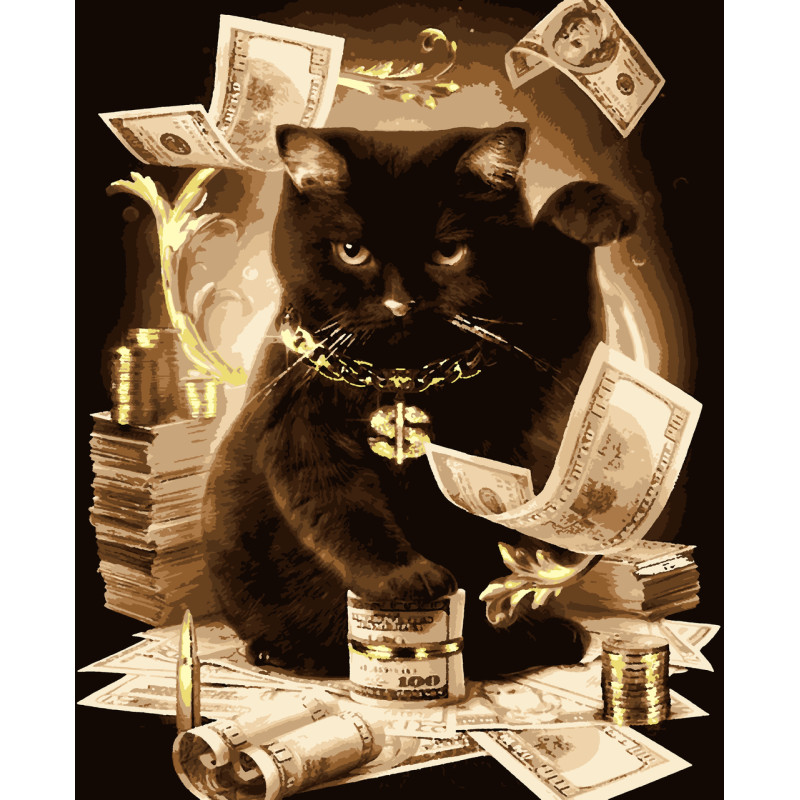 Картина за номерами Кіт з грошима (з золотою фарбою)40х50 см PN5585