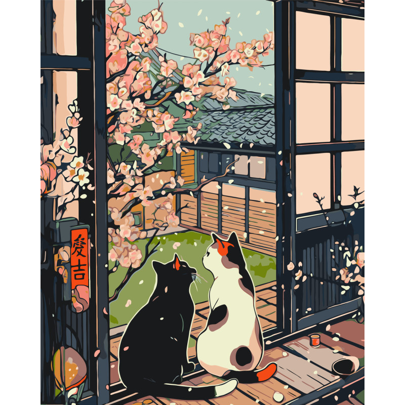 Картина за номерами Котики біля сакури 40*50 см LW 3404