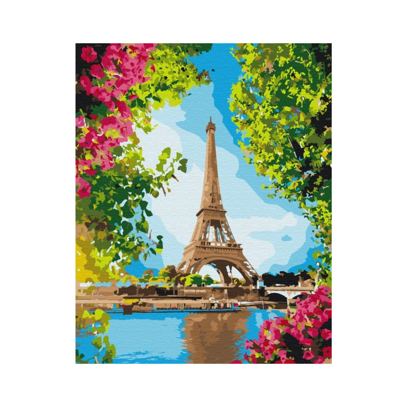 Картина за номерами Квітковий вид на Ейфелеву вежу  BS52706 40х50см