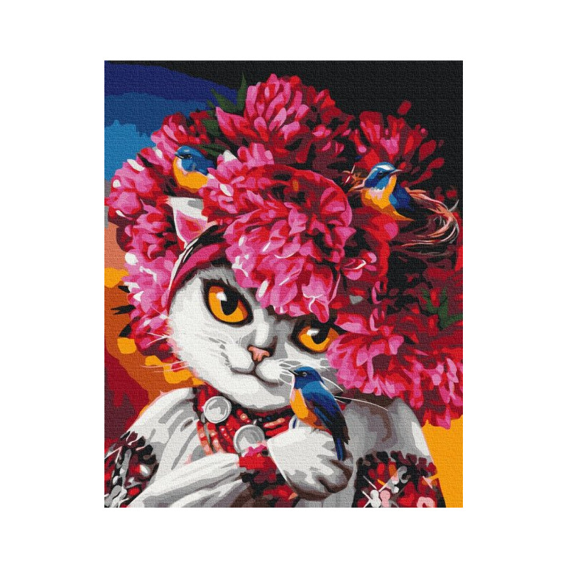 Картина за номерами Квітуча киця  BS53223 40х50см
