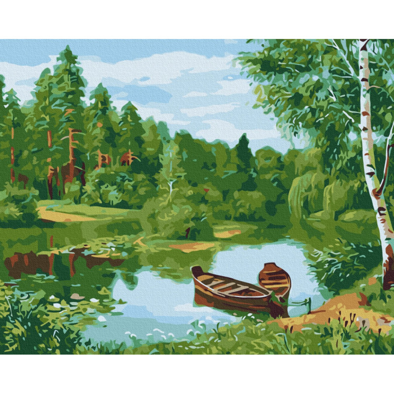 Натуральне полотно на підрамнику із галерейною натяжкою. На картину нанесено схему контурів зображення з нумерацією. - 3 нейлонові художні пензлі - Соковита палітра, пронумерованих, акрилових фарб у контейнерах