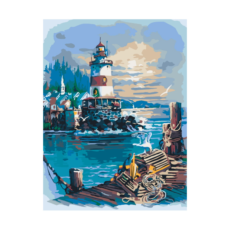 Набір для творчості з красивим сюжетом на полотні і всім необхідним для створення готової картини: - Натуральне полотно на підрамнику із галерейною натяжкою. На картині нанесена схема контурів зображення з нумерацією - 3 нейлонові художні пензлики - Соковита палітра, пронумерованих, акрилових екологічних фарб в контейнерах - Контрольний лист та графічна схема.
