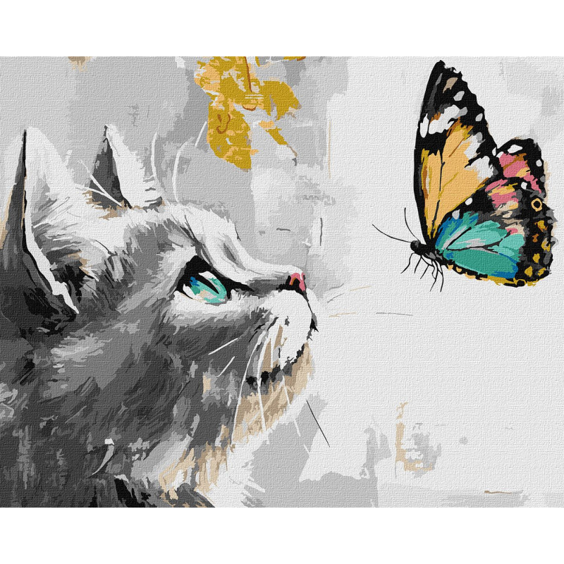 Картина за номерами Мрійлива кішечка з фарбами металiк extra 40x50см КНО6679