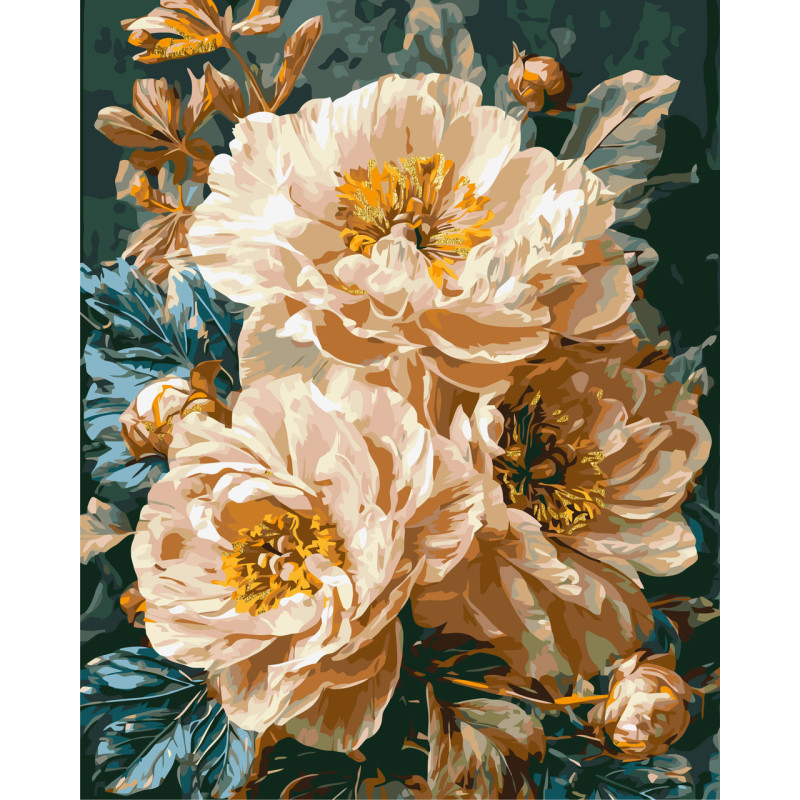 Картина за номерами Ніжні півонії з фарбами металік 40*50 см LW 3159-01